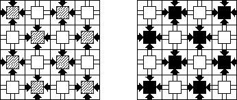 Consider, for example, a program iteratively approximating the solution to a PDE using a Successive Overrelaxation (SOR) method [6]. Processes, arranged in a square mesh repeatedly update their values as a function of the values of their neighbors. To speed convergence, their execution alternates in a checkered pattern as in Figure 1: first striped processes execute and then solid processes.