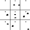 Initially, the simulation might be configured as in Figure 5a. After a single logical timestep, it might be configured as in Figure 5b where both sharks in the first row have moved into the top middle square and the shark on the right has eaten a fish. Figure 5 displays the logical timesteps for each process; it shows synchronized processes moving together from Step 1 to Step 2. If, however, the processes are not synchronized, the confusing display shown in Figure 6 might be seen. In that figure, some processes are at Step 1 while others have advanced to Step 2. The image is difficult to interpret; sharks in the top row, for example, are not displayed at all because during Step 2 they have moved to processes still displayed at Step 1. The problem is not in the code but in its visualization.
