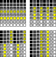 It should be noted that for this algorithm, where all processes recurse to the same depth, the use of phase time or generation time would also suffice. If, however, the depth of recursion was not uniform as, for example, in a binary search, then only our techniques would produce coherent pictures. In the next example, we demonstrate a program that cannot be successfully animated with phase or generation time alone.